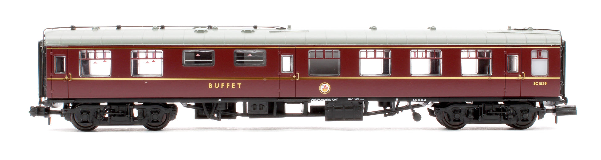 Graham Farish 374-107B Pre-Owned BR Mk1 RMB Restaurant Miniature Buffet BR Maroon No. SC1829