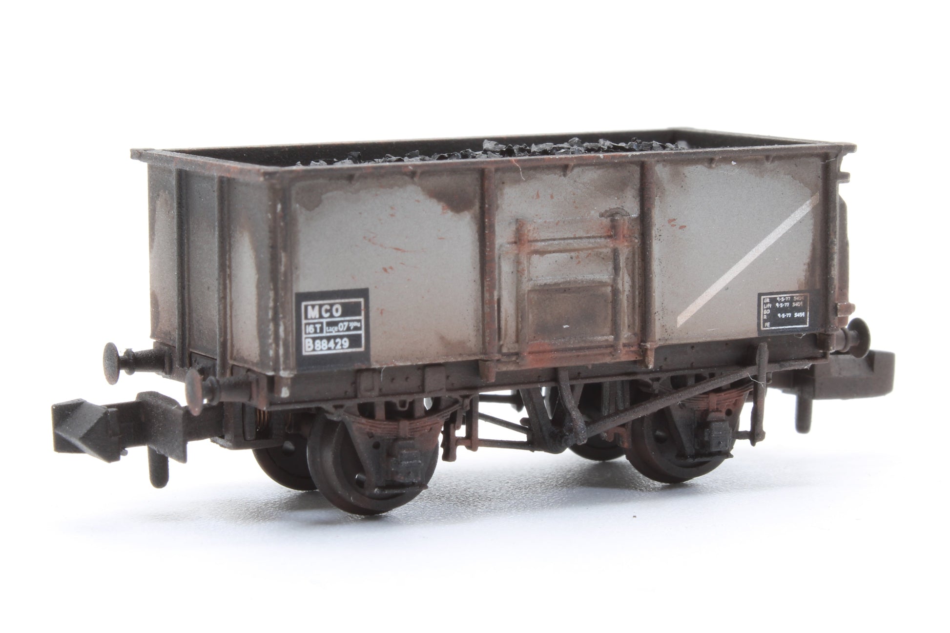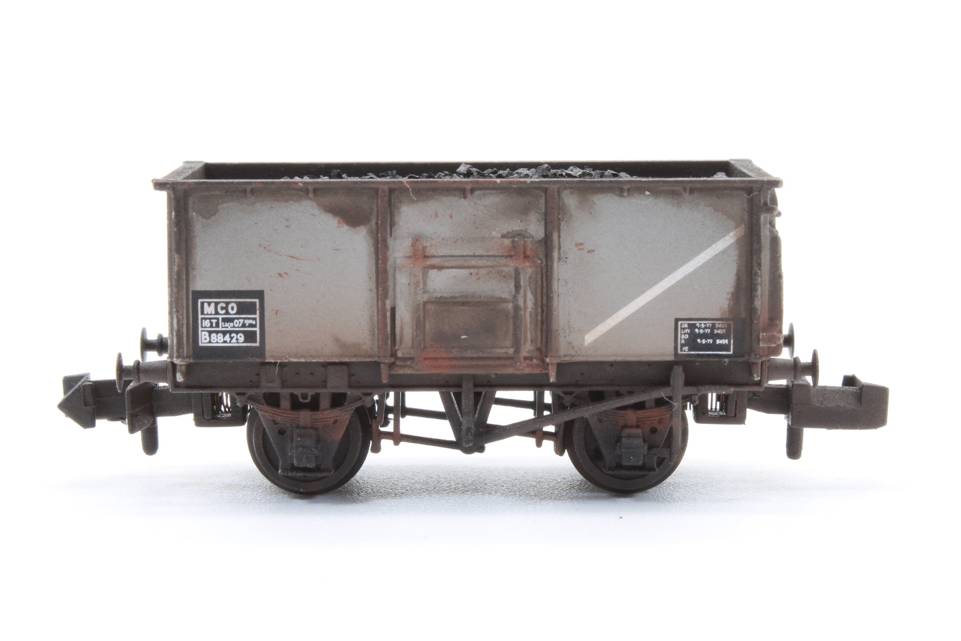 Graham Farish 377-255A Pre-Owned BR 16T MCO Steel Mineral Wagon BR Grey (TOPS) No. B88429 (With Load) - Custom Weathered