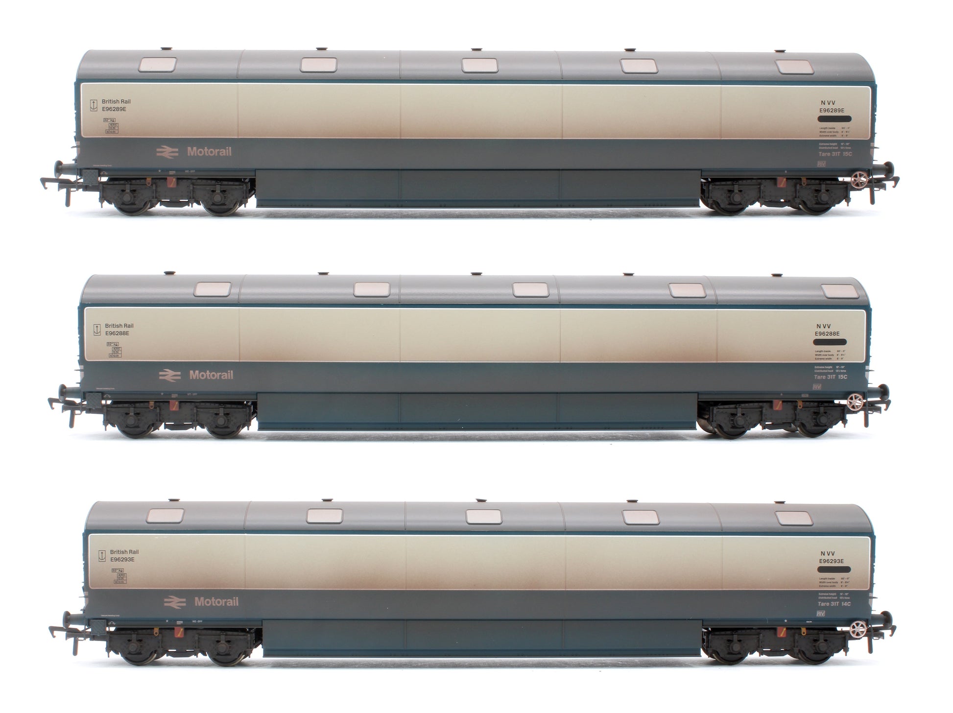 Heljan 9625 Pre-Owned Newton Chambers Car Transporter BR Motorail BR Blue/Grey NVV E96288/289/293E - Weathered - Pack 3