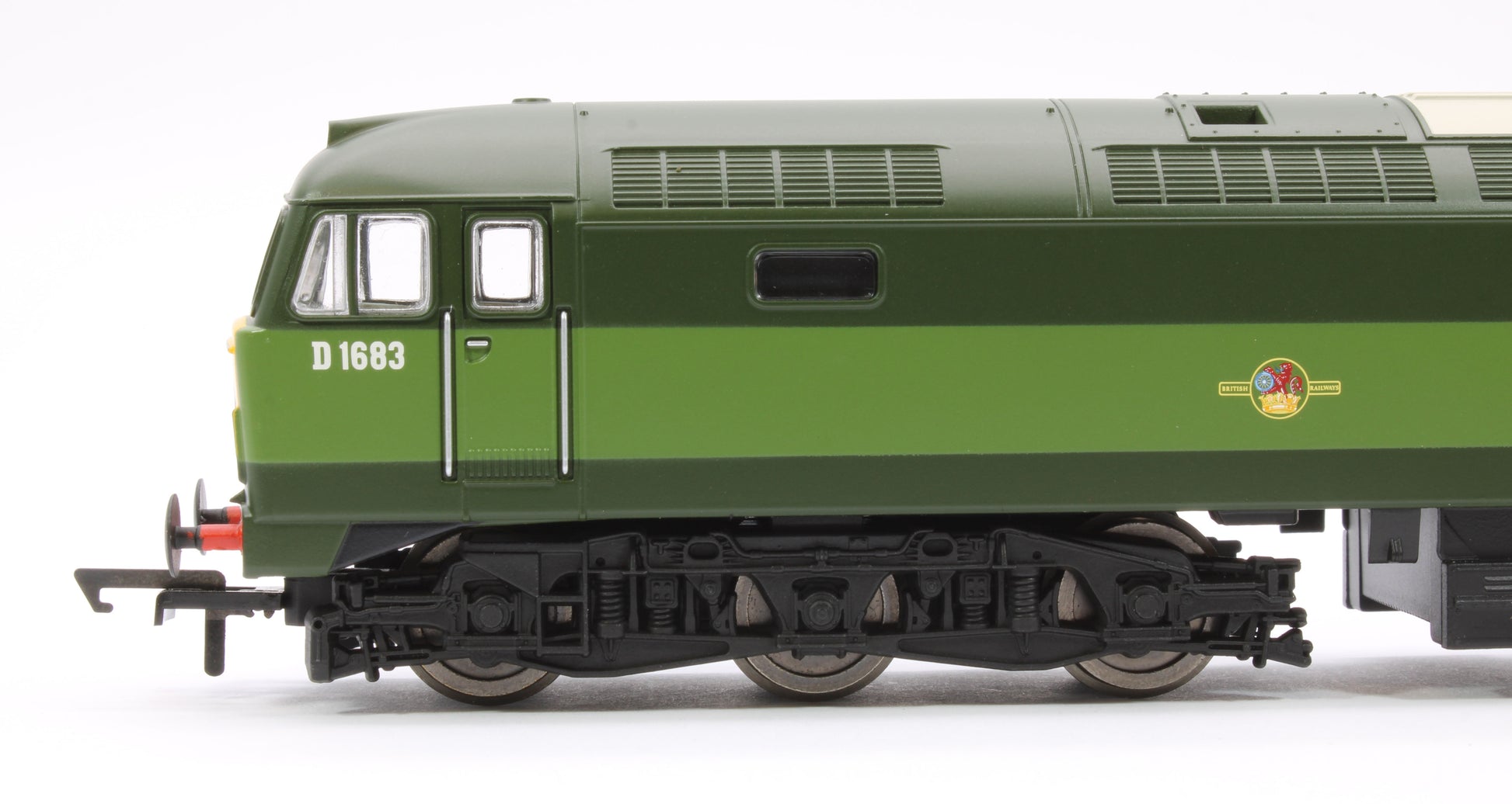 The Class 47 model of No. D183 comes complete in a vivid BR green livery. Etching plates on the cab front are pre-fitted. The model is sound fitted with an 8-Pin decoder and has a pre-loaded Class 47 HM7000 sound profile. The model houses a state-of-the-art sugarcube speaker. As a Railroad Plus model, it has an enhanced livery with intricate detail.