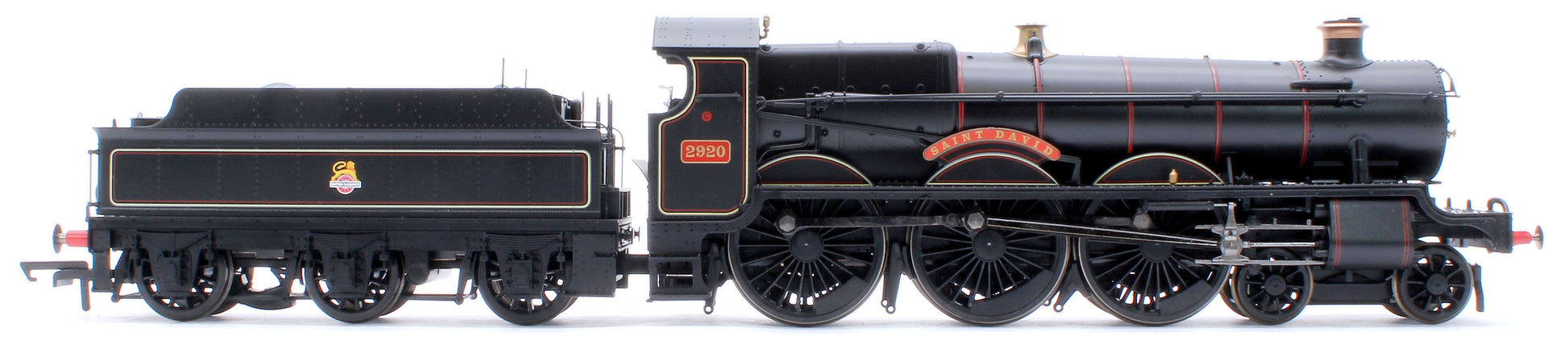 Of the 77 Saint Class members built by GWR between 1902 and 1913, 2920 ‘Saint David’ was one of the 47 that survived beyond nationalisation of Britain’s railways in 1948. Part of the third batch of 20 to be built in 1907, the locomotive was new to Cardiff Canton shed. It underwent several changes during its career, including the fitting of a superheated boiler in 1909 and outside steam pipes in December 1932. This model is presented in BR livery, the condition in which it operated through to its withdrawal in October 1953, by which point it was one of the last four still in service.