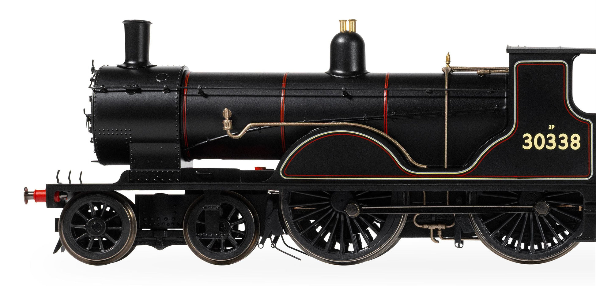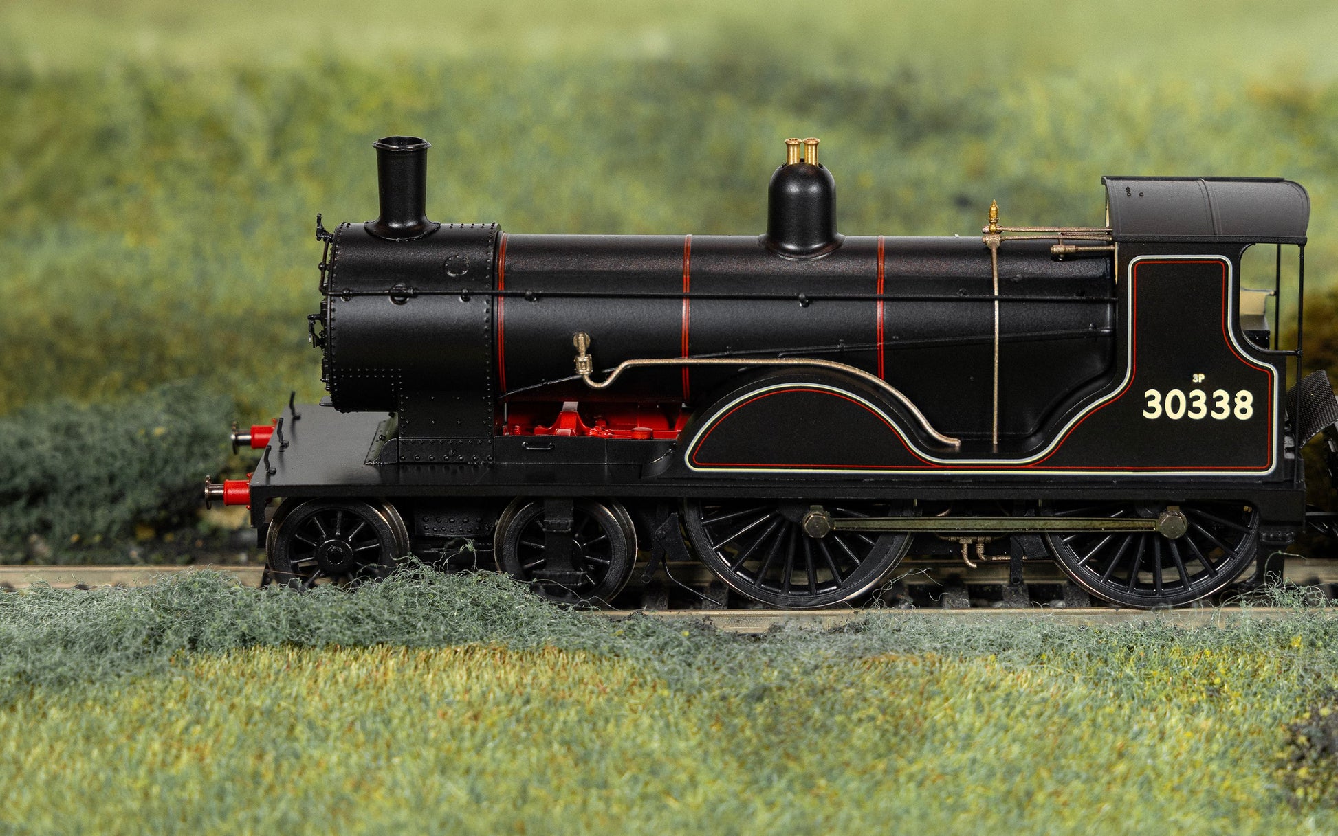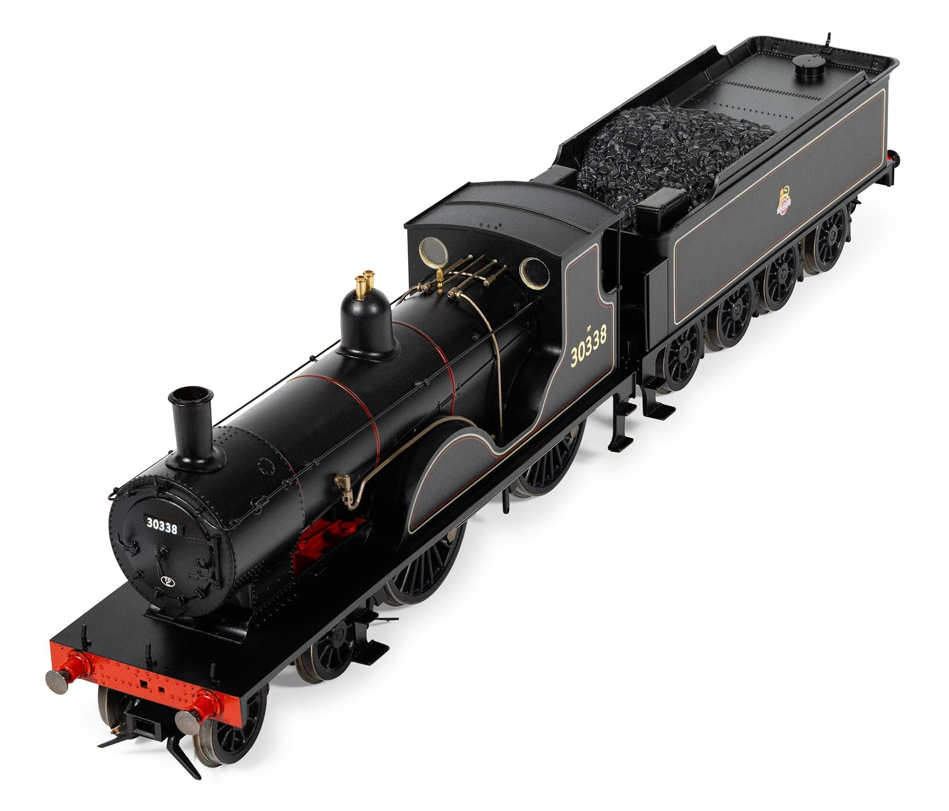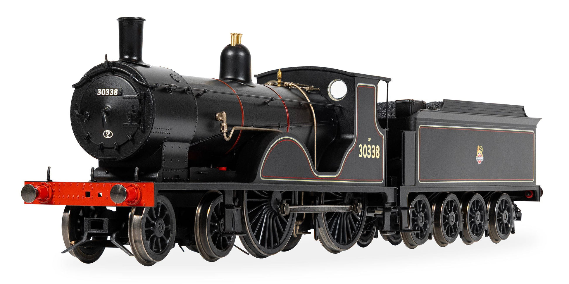 Built at the LSWR’s Nine Elms Works, No. 30338 entered service in October 1901 as No. 338 and lasted in service until withdrawn by British Railways in April 1961, having completed a respectable 59 years and six months. This locomotive was the last of the class to be built at Nine Elms and had a wider cab and revised splashers compared to earlier class members. It was also paired from new with an eight-wheel water-cart tender.