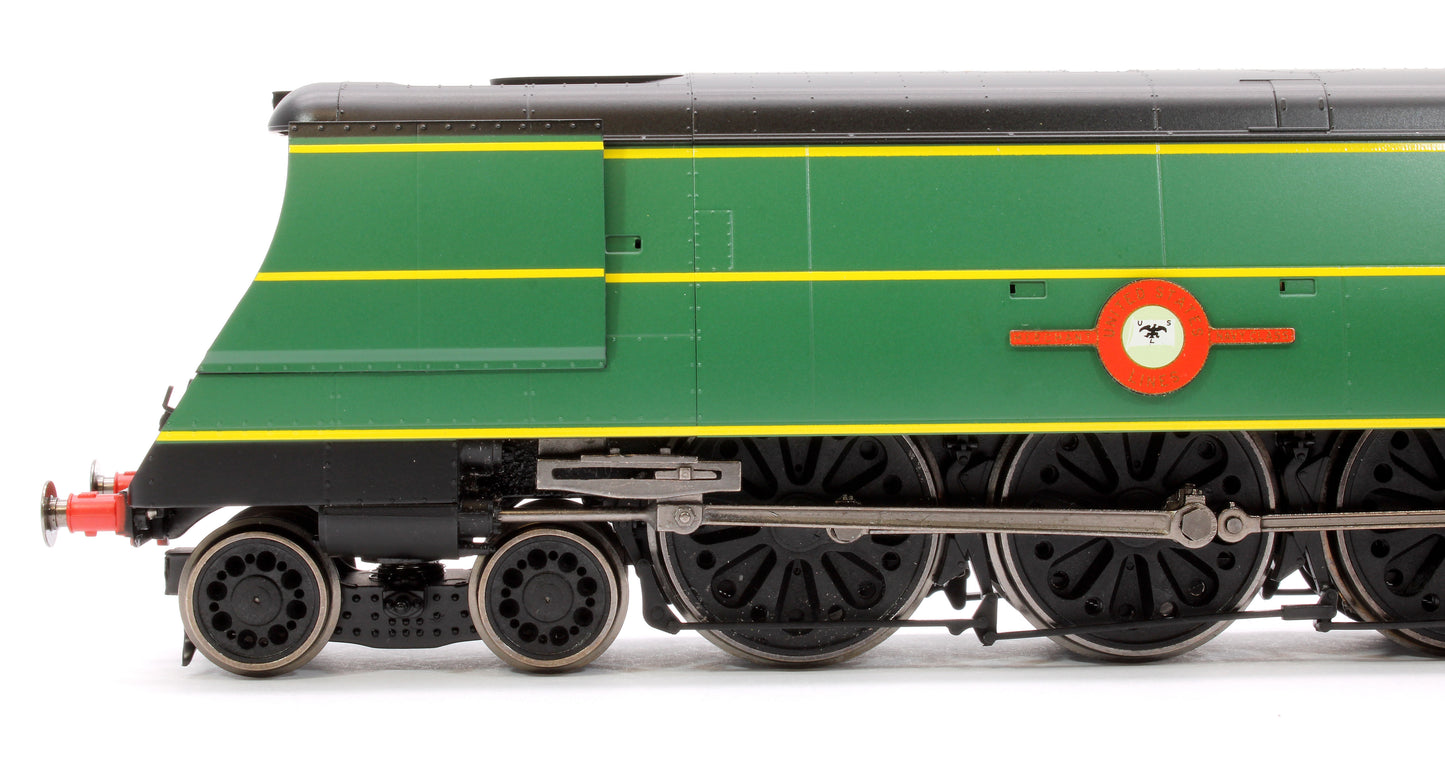 The Hornby Merchant Navy is fitted with a powerful five pole motor and a large flywheel providing excellent performance. The locomotive if fitted with a fully detailed cab, tender pickups, NEM pockets front and rear and a 8 pin decoder socket.