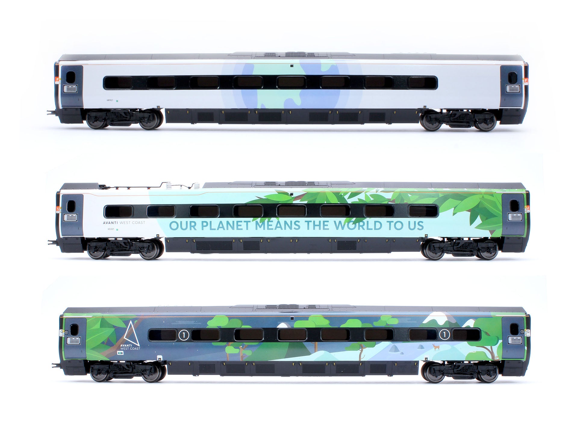 Hornby R40483 Avanti West Coast Class 390 Climate Change Livery Coach Pack 3 69721 + 69821 + 69921