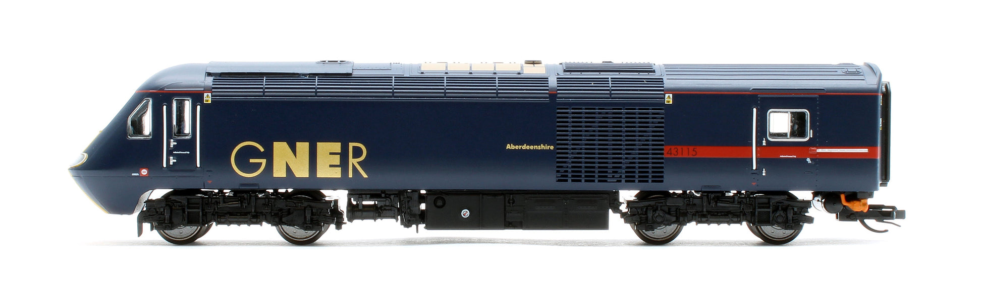 These worked alongside Class 91 electrics with their Mk4 carriages and Driving Vehicle Trailers (DVTs), the HSTs finding favour on routes to destinations where electrification had yet to be completed. Power cars 43120 and 43115 were part of the inherited fleet and were soon re-liveried in the GNER’s striking blue with red stripes and gold lettering, as carried by the Hornby models, with 43120 powered and 43115 non-powered in the two-car Train Pack.