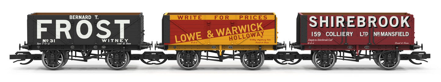 Hornby TT6042 7 Plank Wagon Lowe & Warwick Bernard T Frost Shirebrook Triple Pack