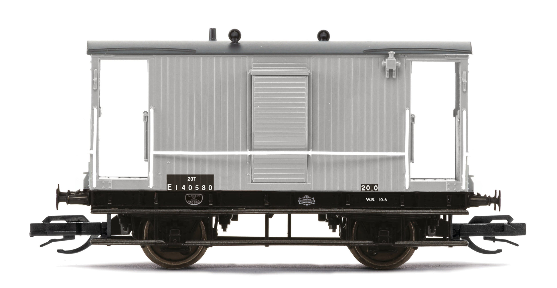 The BR ex-LNER Brake Van E140580 in TT:120 scale is a faithful representation of the distinctive brake vans inherited from the London and North Eastern Railway and widely used during the early British Railways era.