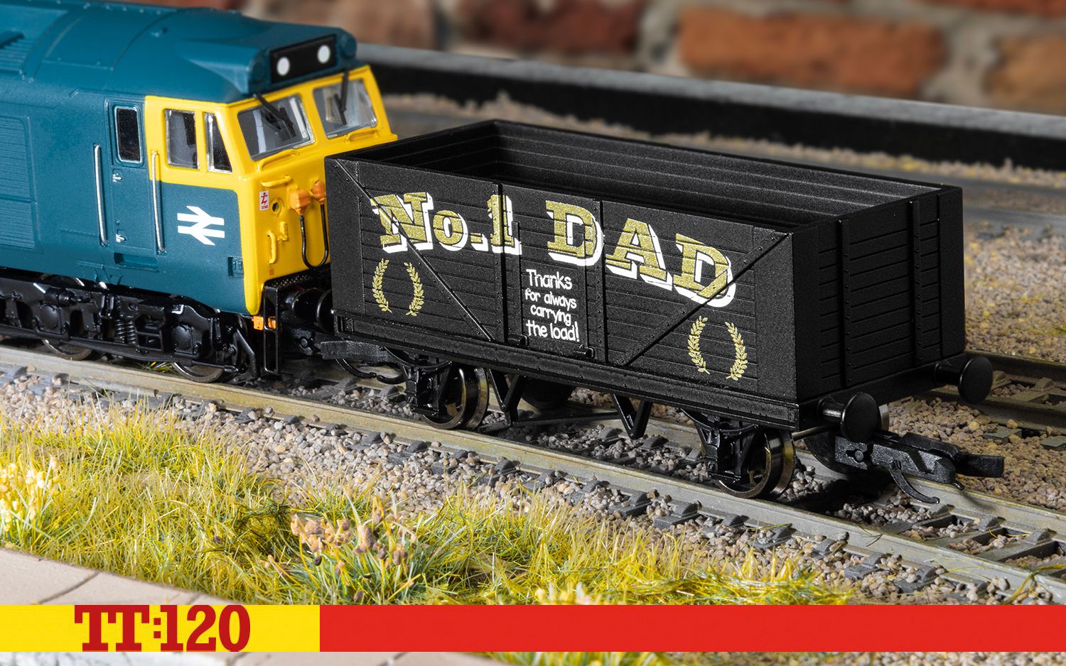 This long wheelbase open wagon is the first ‘Father’s Day’ wagon for Hornby TT:120. Presented in a satin black finish with the words ‘No. 1 Dad, Thanks for always carrying the load’ it makes the perfect gift for any model railway-loving Dad.