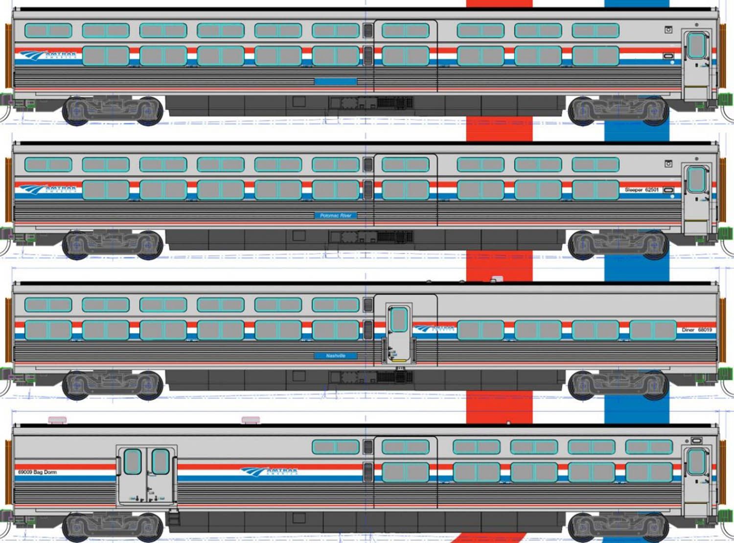 Set of four 1:160 Scale Viewliner II Coaches decorated in Amtrak PhIII livery. These models feature lots of expertly applied details as based on the prototype, a high level of body detail and excellent running characteristics.