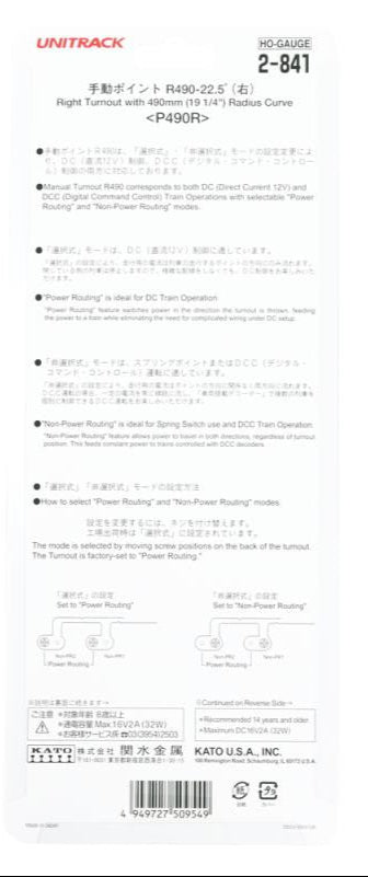 Kato 2-841 Unitrack (HP490R) Right Hand Turnout