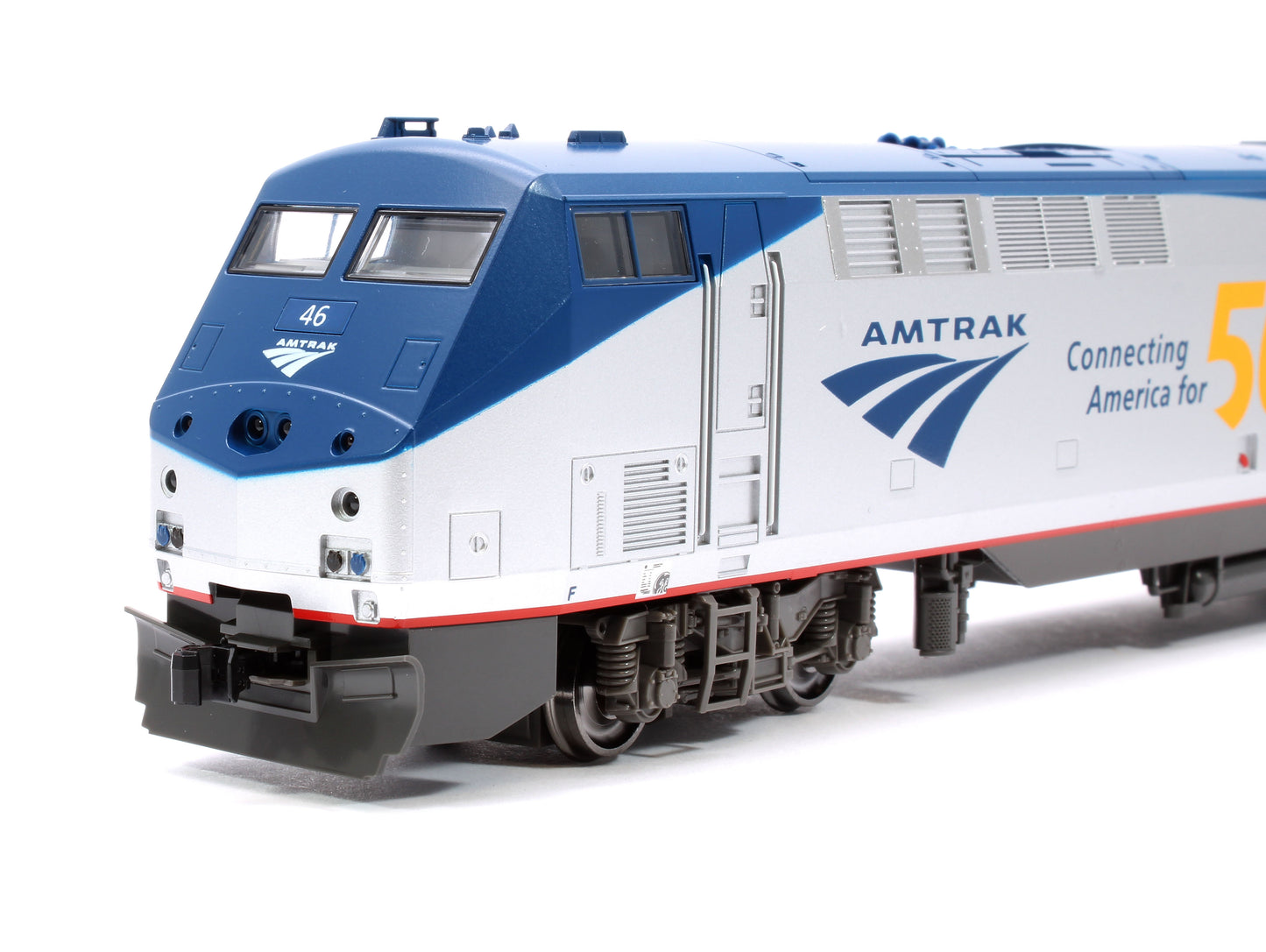 - Directional headlights and tail lights on both the front and rear of the locomotive, allowing it to operate as both a standard pulling locomotive with double heading capability or a push-pull engine, whether oriented facing forward or back.