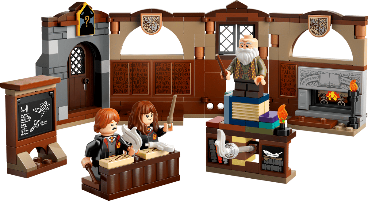 The buildable Hogwarts classroom folds out for easy play and features a Wingardium Leviosa feather-levitation function, detachable desks for the students, a detachable chalkboard with spell instructions and more. This magical toy also includes LEGO Harry Potter characters – Ron Weasley™, Hermione Granger™ and Professor Flitwick – to role-play unlimited imaginative stories.