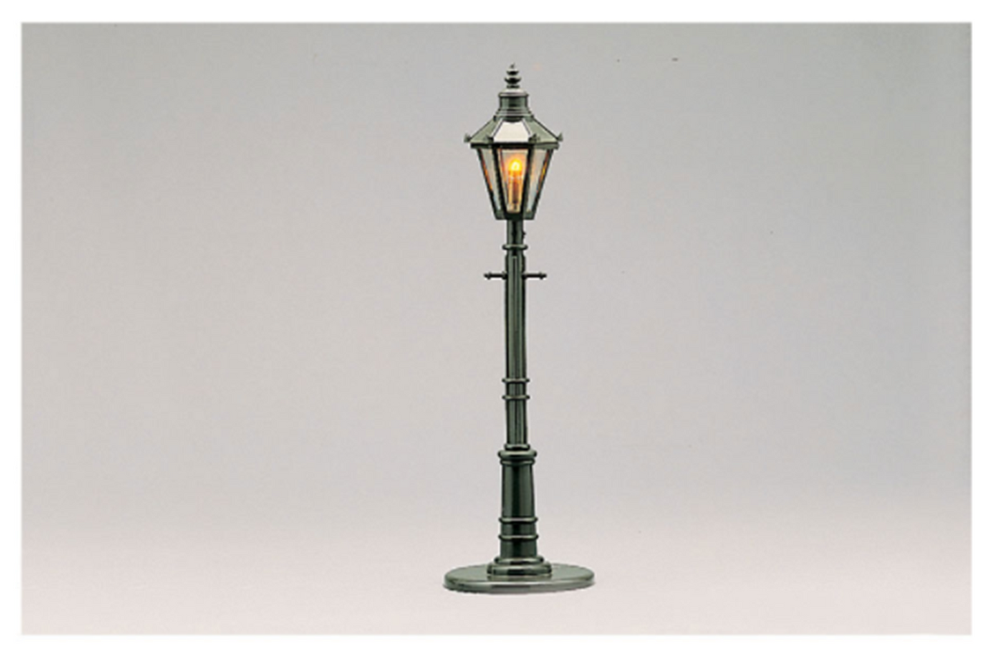 Lantern-style lamp for your layout. 18 V bulb (LGB 68501). Base spike for outdoor use. Height 210 mm.