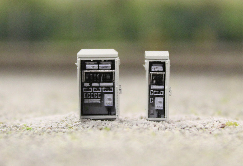 Goodwood Scenics BSRB4DODLG1 Lineside Cabinets - OPEN DOORS - Light Grey - Pack of 2