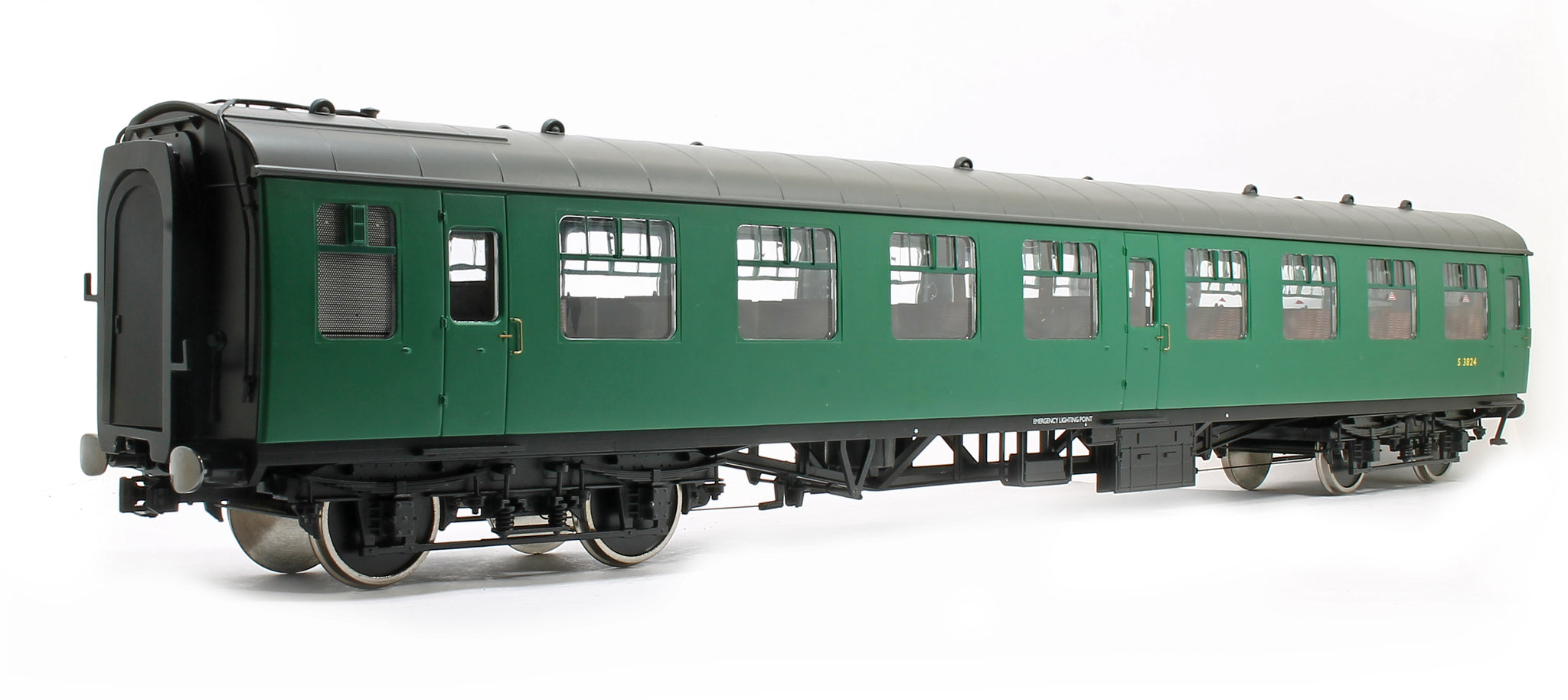 These models are stunning replications of the real coaches and feature lots of added external and internal details like brake pipes, clear glazed windows, fitted seats, detailed under frame, and corridor connections. They are also fitted with internal lighting, which illuminates with track power. A great model and a must have for any British O Gauge modeller.