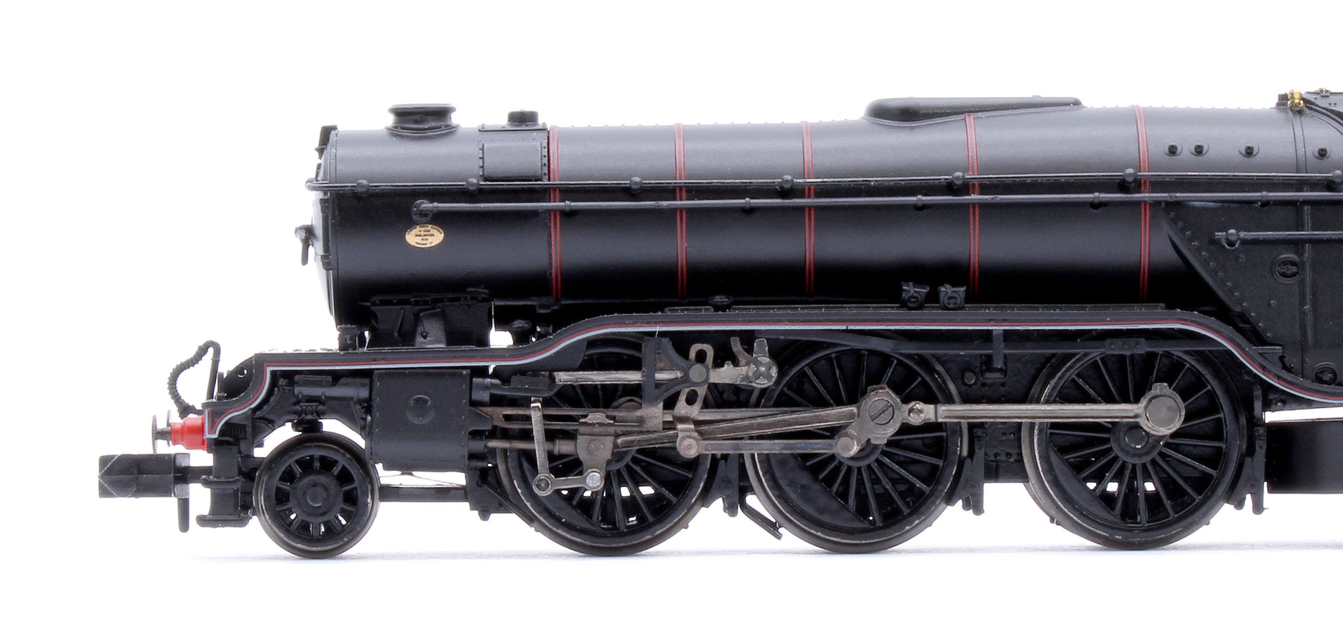 - High-precision, injection-moulded bodyshell, running plate and tender with separately fitted details parts including lower front lamp irons, lubricators, reverser and sandbox fillers