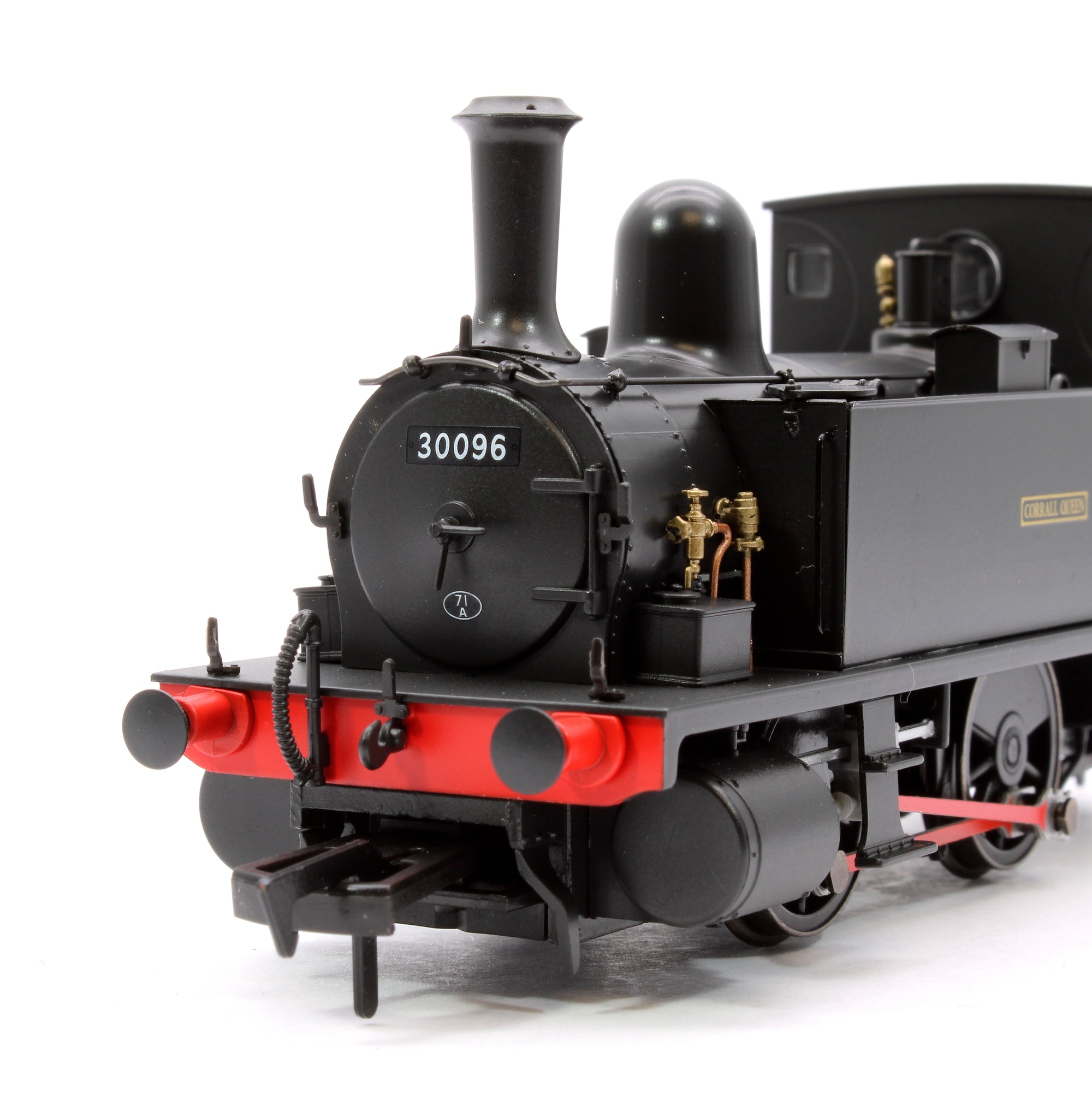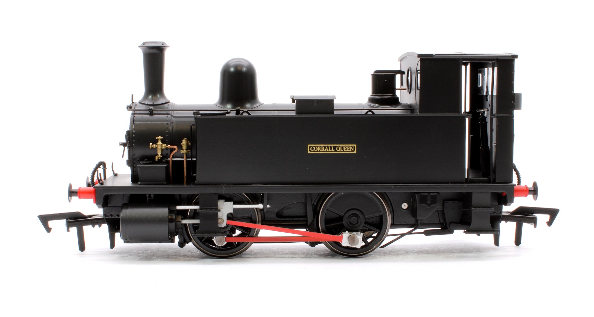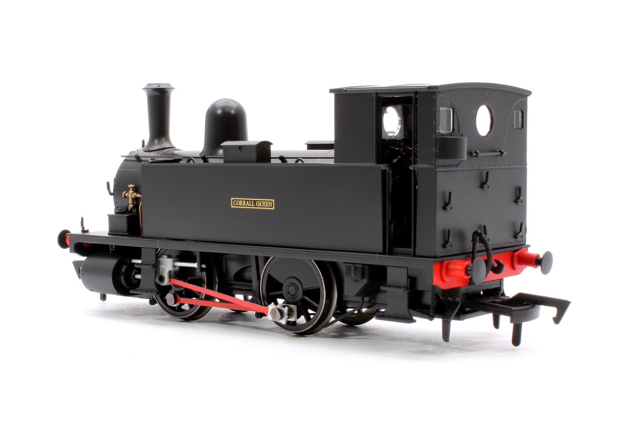 The locomotives were designed by the London and South Western Railway (LSWR) Locomotive Superintendent William Adams. They were unusual in having inside Stephenson valve gear but outside cylinders and coal bunkers on the footplate inside the cab. The class were originally built with Adams's design of stovepipe chimney, although these were later replaced by a lipped version, as on our model, designed by Adams' successor, Dugald Drummond. Our model is an example with an original cab, but some examples also had cut away cabs to improve visibility. They were designed for shunting in locations with a sharp curves, such as the dockyard at Devonport and as pilots at the major stations.