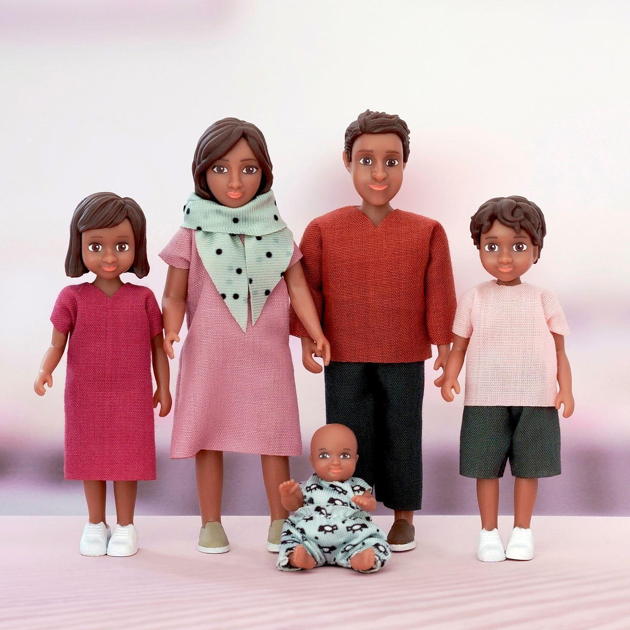 Doll set from Lundby with five different dolls, two adults and three children (including a small baby).