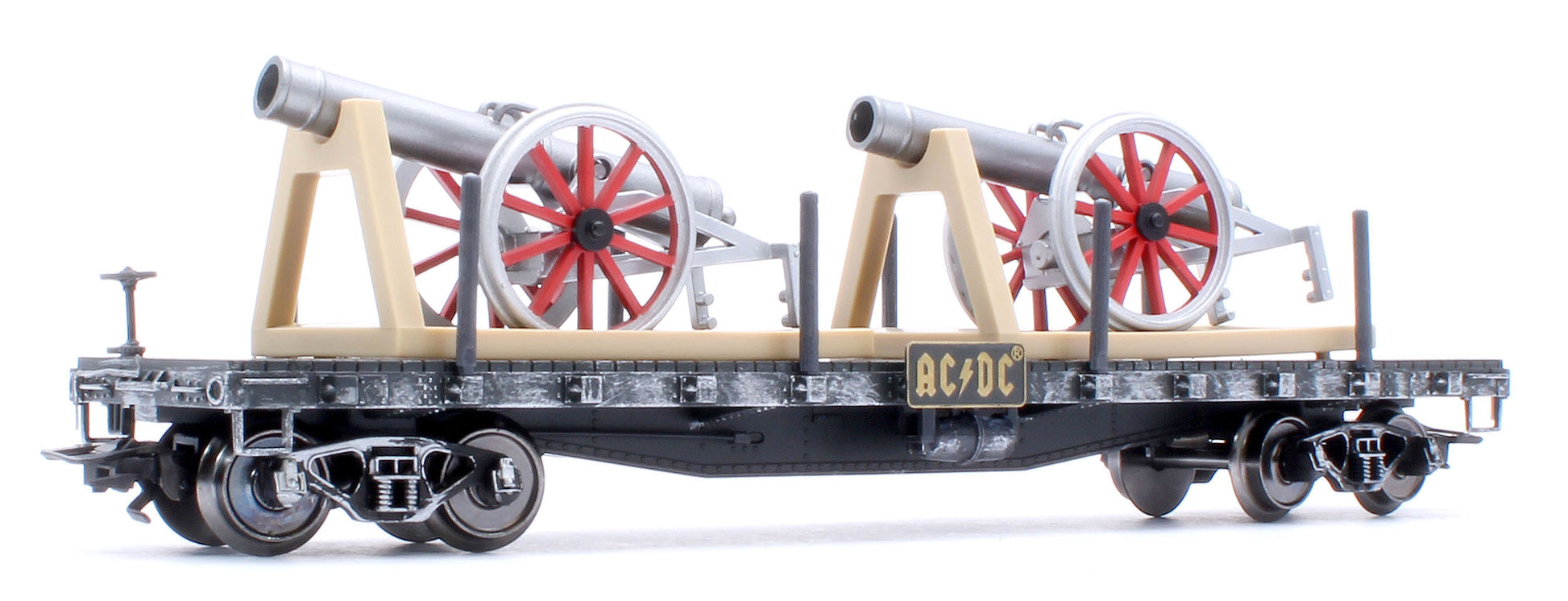Pure energy and spectacle define AC/DC concerts. The legendary cannons, the unforgettable sound: this is where hard rock is at home. Since then, numerous concerts have started with the chimes of the song "Hells Bells" and ended with the dignified salute. Of course, the cannons should not be missing from the Märklin model. A metal stake car transports the cult objects from gig to gig.