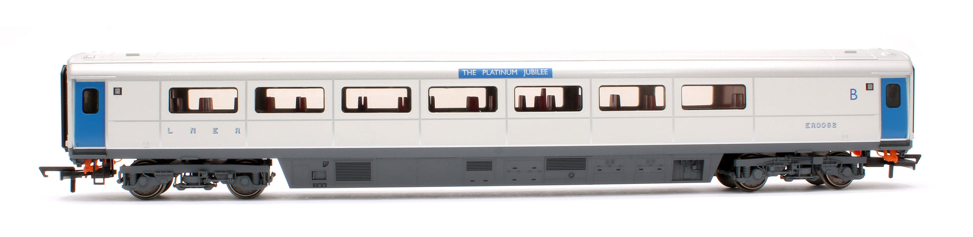 Running with the Platinum Jubilee HST units, this coach reimagines what the ageing Mk3 coaches may have looked like in this celebratory Platinum Jubilee year under the old LNER. Full trains of these could have been used to commemorate such an occasion had nationalisation simply not happened.