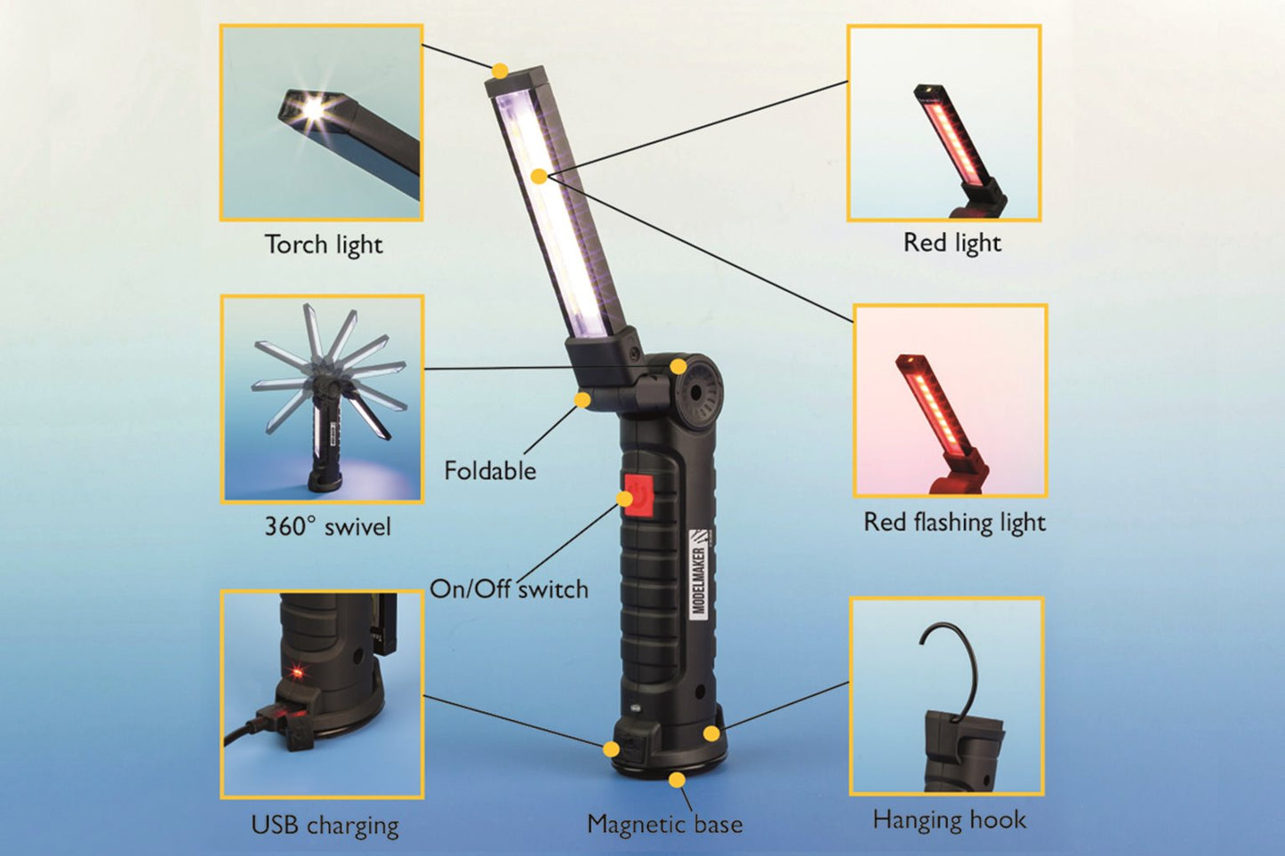 This compact foldable LED lamp comes with five light settings, magnetic bases and an ergonomic design. It provides portable cool, shadow free light for a variety of modelling, craft and DIY tasks.