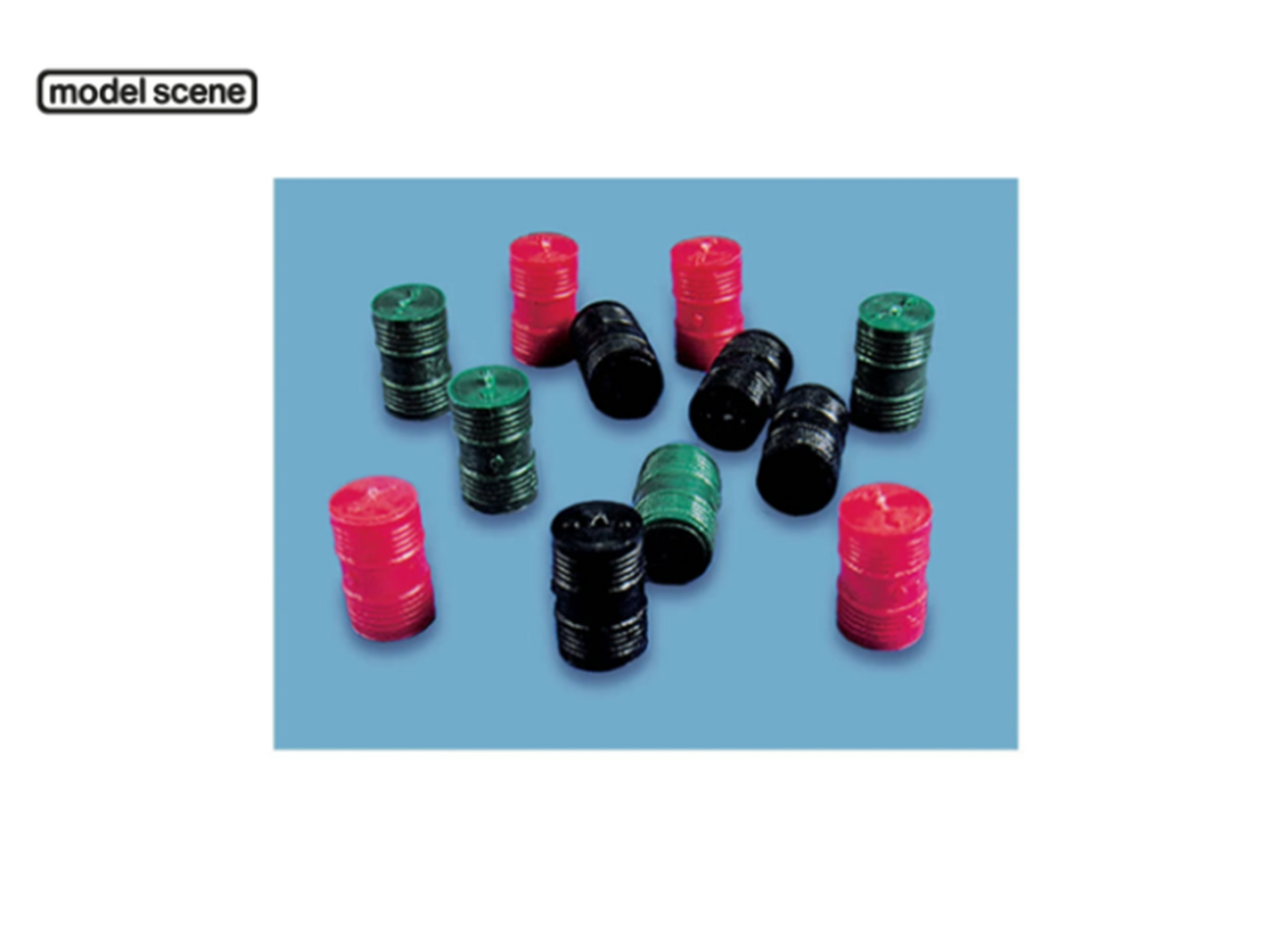 Pack contains 12 Oil Drums to use as a load or as detail for your goods yard or oil depot. See Ratio Ref. 529 Oil Depot