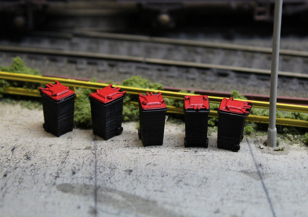 Goodwood Scenics BSWBRL5 Modern Wheelie Bins - Pack of 5 - RED LIDS