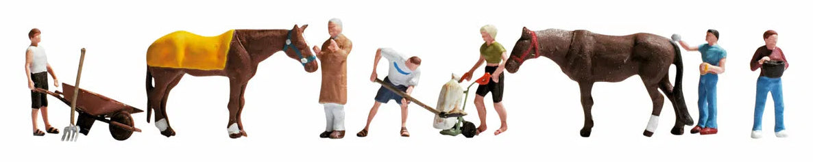 Noch N15634 Stable Hands (6) Horses (2) and Accessories Figure Set