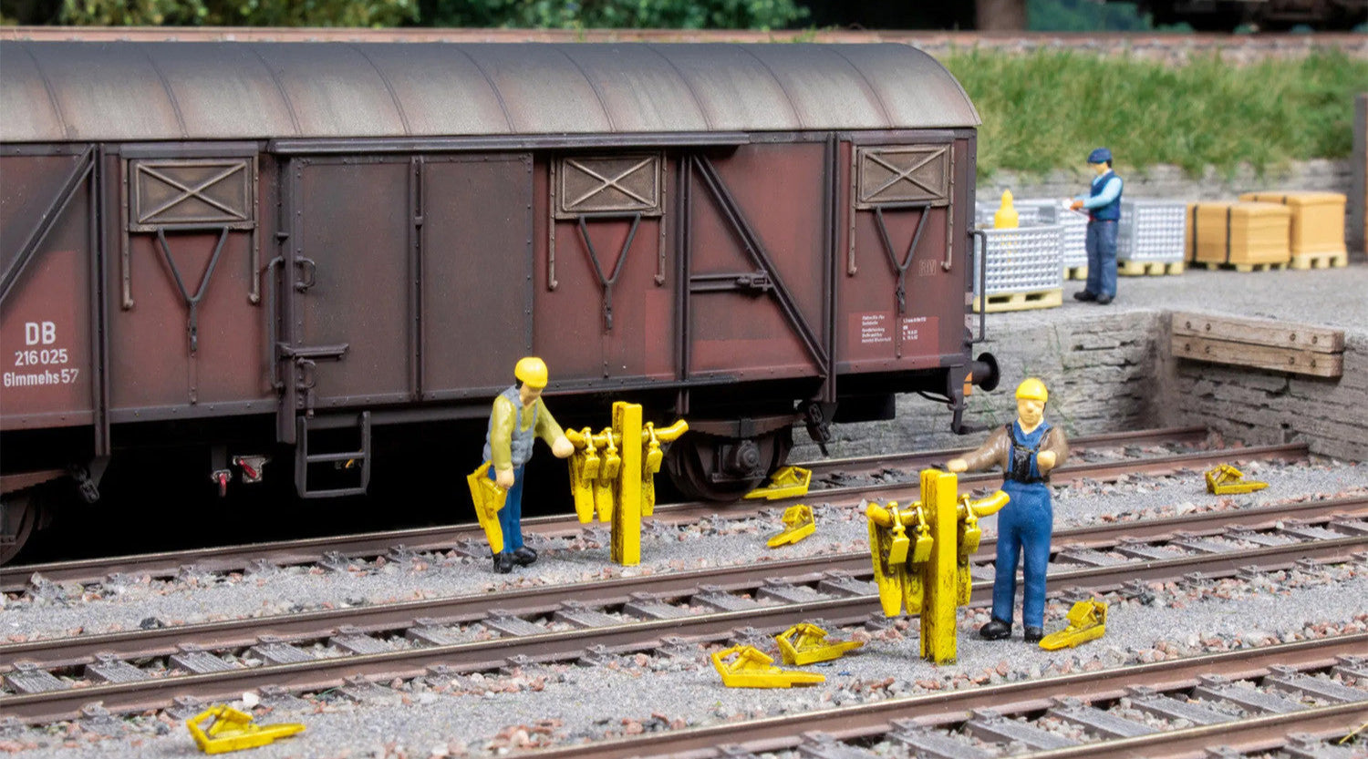 Whether on sidings, in shunting areas or as a detailed accessory on your entire layout - this brake shoe set ensures a realistic replica and brings a piece of railway safety to your model world. Easy to place and robustly made, this set is an indispensable accessory for every model railroader who values precise details.
