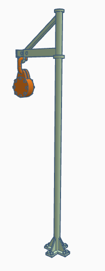 Industrial green posts with yellow hook. There is no connection between the hose and the yellow hook.