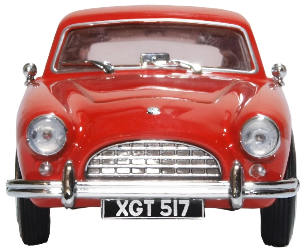 Our 1:43 scale replica appears in bright red with exterior chrome trim and silvered wheels. Registered XGT 517, the interior is moulded with red seating, door panels and flooring. The black dashboard has wood effect panelling and black instrument panel.