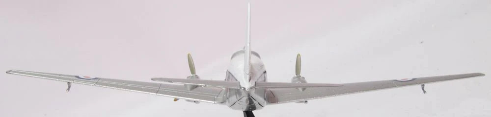 Decorated in an attractive white, silver and royal blue colour scheme to the upper wings and fuselage, the underside is painted silver. The clear canopy reveals the cockpit and instrument panel detail in grey and the passenger area in light tan. Even the propeller spinners are given a royal blue finish. The RAF markings and WB 534 identity round off a very attractive example of this sleek aircraft.