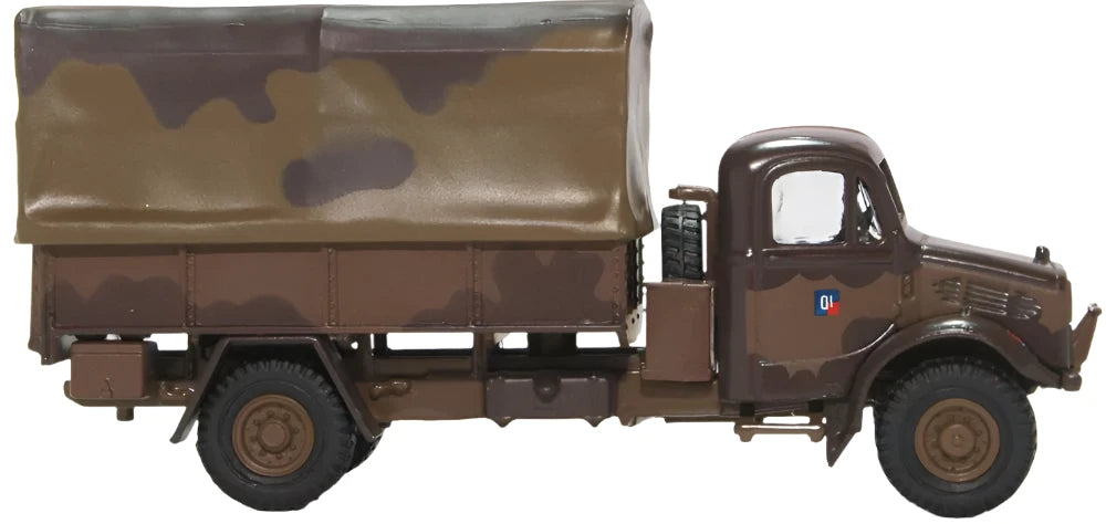 Bedford’s role in supplying the military with support vehicles during WWII is legendary and this latest general service truck is as used by the Scottish Infantry based on the home front in 1943. Decorated in a brown camouflage scheme with canvas back, the cab roof features a double red stripe. Military numbering/lettering brings a spot of colour to the truck, notably the Scottish Lion emblem in red out of yellow on the front mudguard and rear edge.