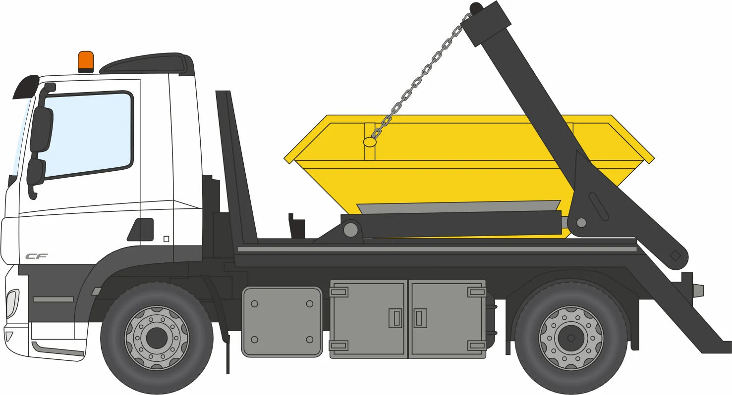 Oxford Diecast 76DSL001 DAF Skip Lorry White