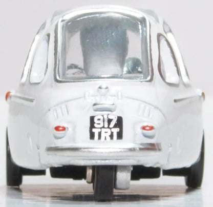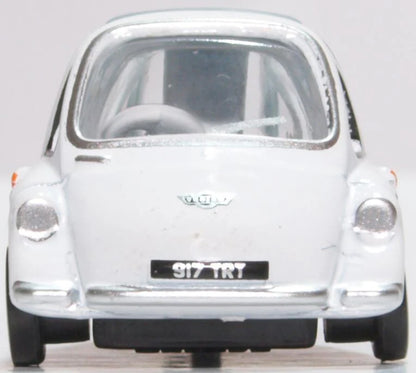 This Heinkel Trojan in sparkling white colour scheme in 1:76 scale comes with right hand driver feature, tartan interior seating and a grey sunroof. Our model is registered 917 TRT. It represents the three wheel micro-car originally designed and manufactured by Heinkel in Germany between 1956 and 1958 before acquisition by the UK's Trojan Cars Ltd who continued to make the Heinkel Trojan until 1966. Its quirky characteristic included a single front opening door, a sunroof which also acted as an escape hatch in an emergency - and unlike some of its competitors, the Heinkel Trojan had a reverse gear!
