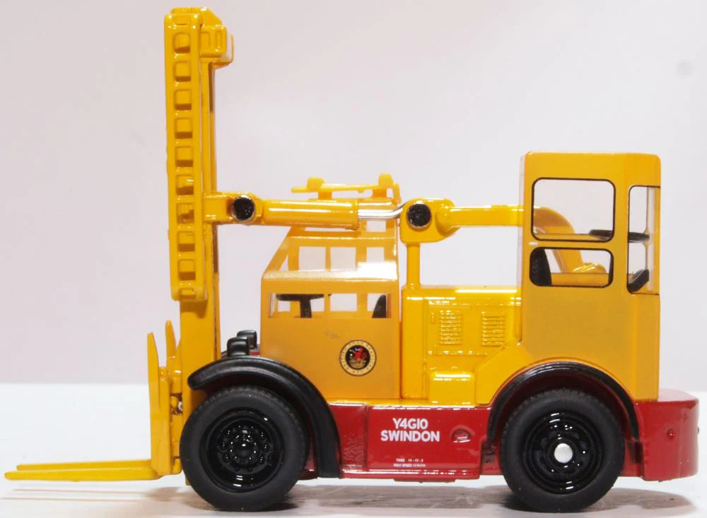The famous British Road Services crest is printed in full colour on the Dualdrive cab of the fork lift, which Shelvoke & Drewry introduced as a direct competitor to the American Hyster forklift. Its capacity of being able to lift between 12000 and 18000 lbs with a lift height of up to 29 feet made it a desirable vehicle for use with the Armed Forces as well as with railway companies. First produced in 1952, the Freightlifter went on until 1974, with one or two re-designs along the way. Our highly detailed model is a tribute to a great little workhorse.