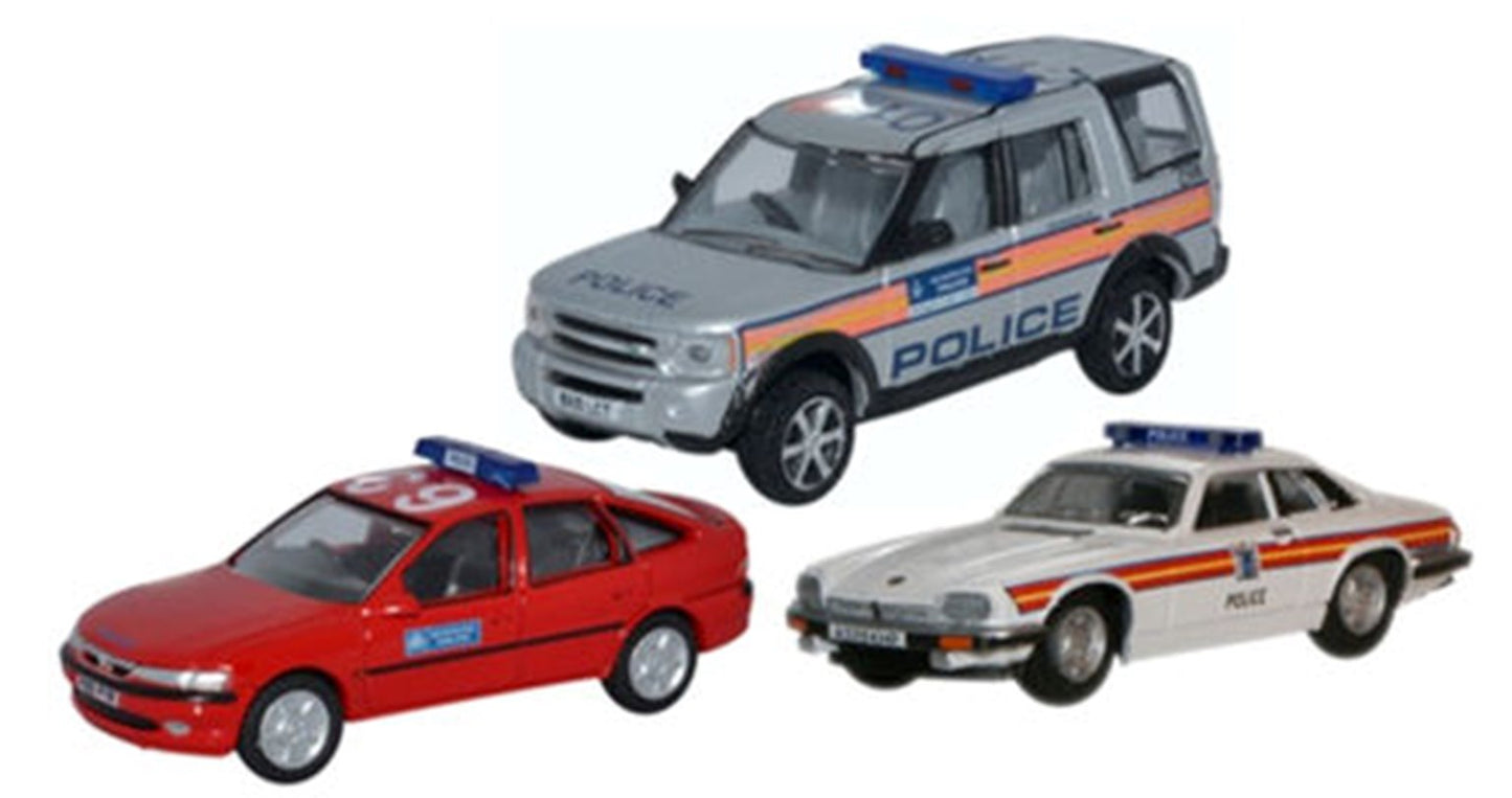 A treat for Police car enthusiasts comes with this three-piece set of models from the Metropolitan Police, made up with a Land Rover Discovery, a Vauxhall Vectra and a Jaguar XJS.