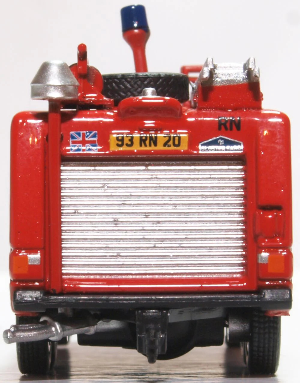 The Royal Navy RNAS Yeovilton TACR2 (Tactical Aircraft Crash Rescue) vehicle appears in the traditional red colour scheme with a Royal Navy registration number 93 RN 20. It comes with all the accessories necessary for its important role - roof ladders, spare wheel, roof beacons, spotlights hazard lights and floodlights, as well as fire hoses, reels and nozzles. The interior of the cab is moulded grey with light tan seating. An interesting detail includes the Gloster SARO plaque on the front and rear of the tender, reminding us of its Saunders-Roe heritage.
