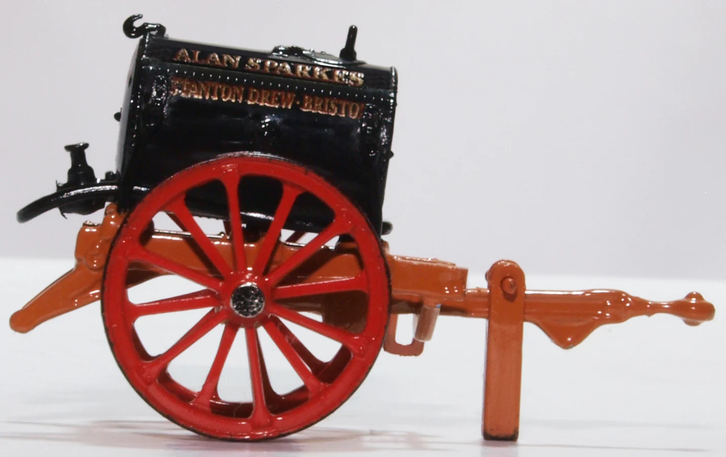 The water bowser from the nostalgic age of steam power. Water bowsers were a great way of carrying extra water either to areas where there was insufficient piped water or to accompany steam vehicles which needed topping up during the course of their daily work. The period version modelled here in 1:76 scale probably held around 8 gallons which could be siphoned off by opening the tap and hose.