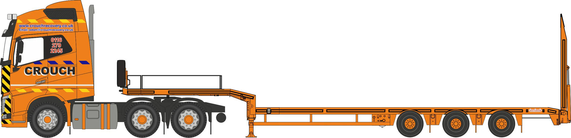 1:148 Scale Model of the Volvo Fh4 Semi Low Loader Crouch Recovery. Manufactured by Oxford Diecast one of the worlds leading producer of Scale Model vehicles.