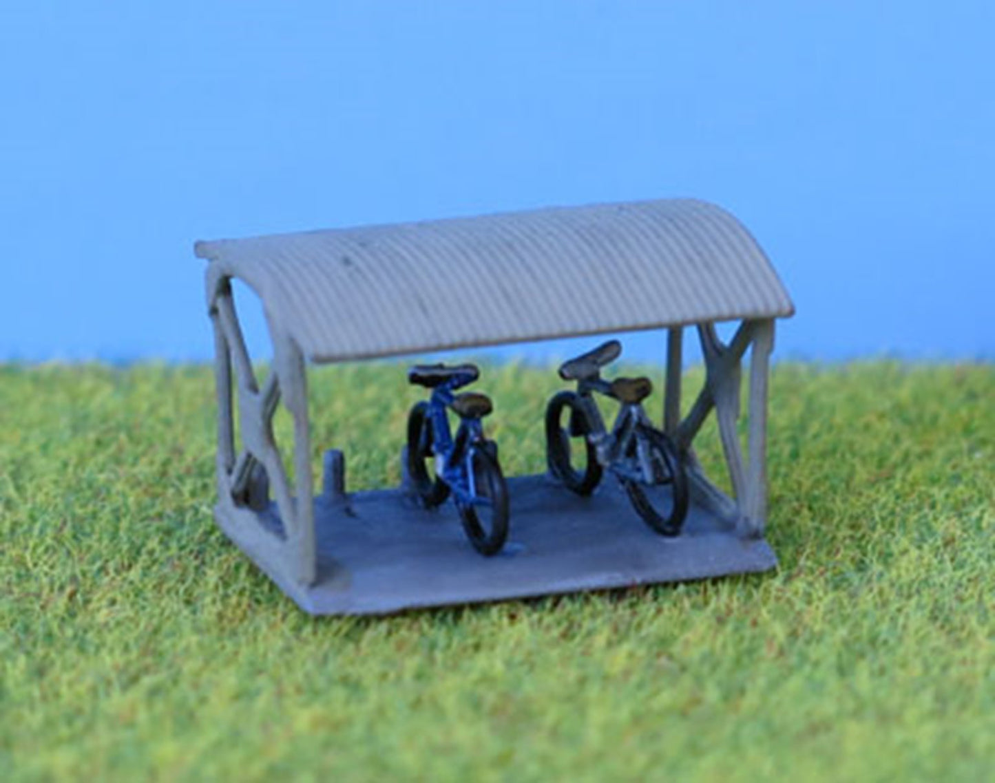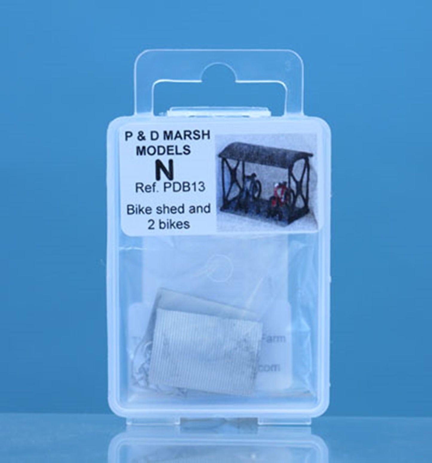 P & D Marsh PDB13 N Gauge Bike Shed & 2 Bikes - Unpainted
