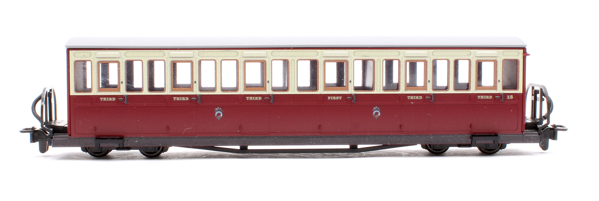 Peco GR602B Ffestiniog Railway Short 'Bowsider' Bogie Coach, Red & Cream, No. 18