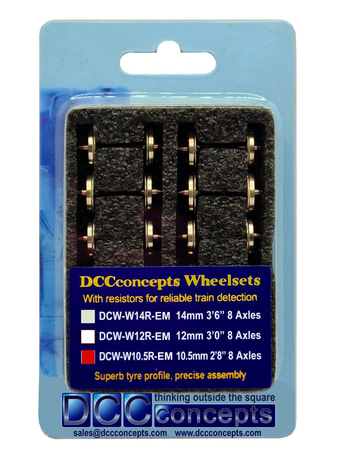 DCC Concepts DCW-W10.5R-EM Quality Resistive Wheelsets EM/18.2mm Track 8x 10.5mm (2’8″)