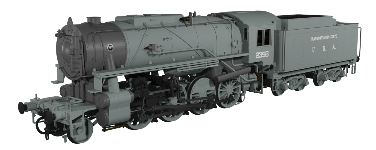 Rapido Trains UK 926504 USATC S160 2-8-0 SR Wartime Light Grey with Transportation Corps U.S.A on Tender No.2356 Steam Locomotive - DCC Sound
