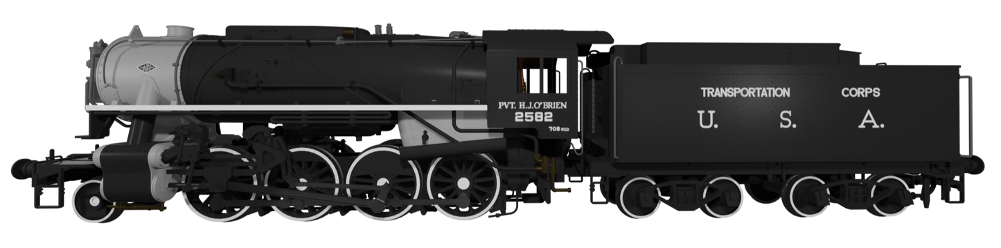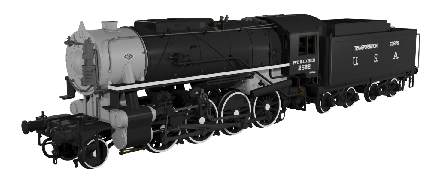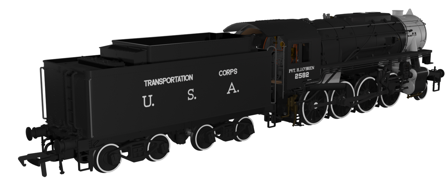 Rapido Trains UK 926513 USATC S160 2-8-0 'Pvt. H.J. O’Brien' Black with Transportation Corps U.S.A. on Tender No.2582 Steam Locomotive - DCC Sound