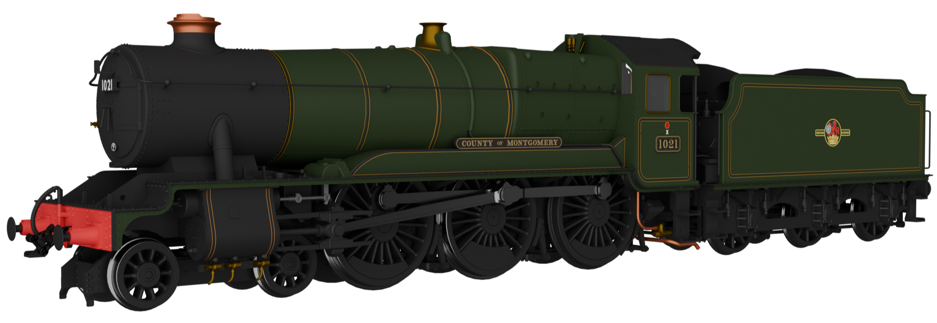 Rapido Trains UK 954008 GWR County No.1021 'County of Montgomery' BR Lined Green Late Crest Steam Locomotive