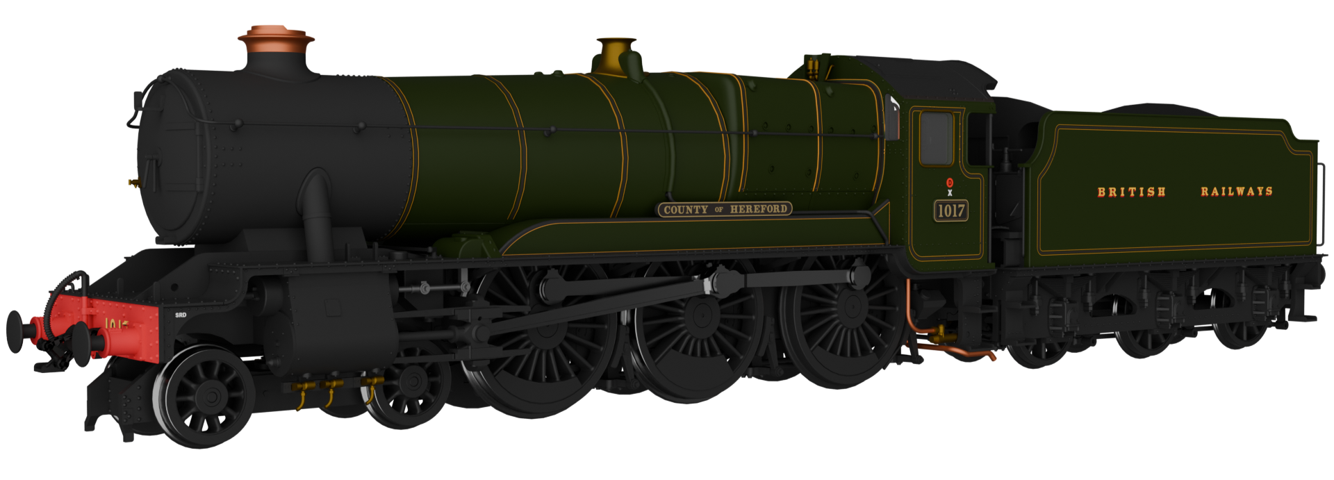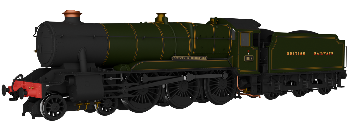 Rapido Trains UK 954503 GWR County No.1017 'County of Hereford' BR (Egyptian) Lined Green Steam Locomotive - DCC Sound