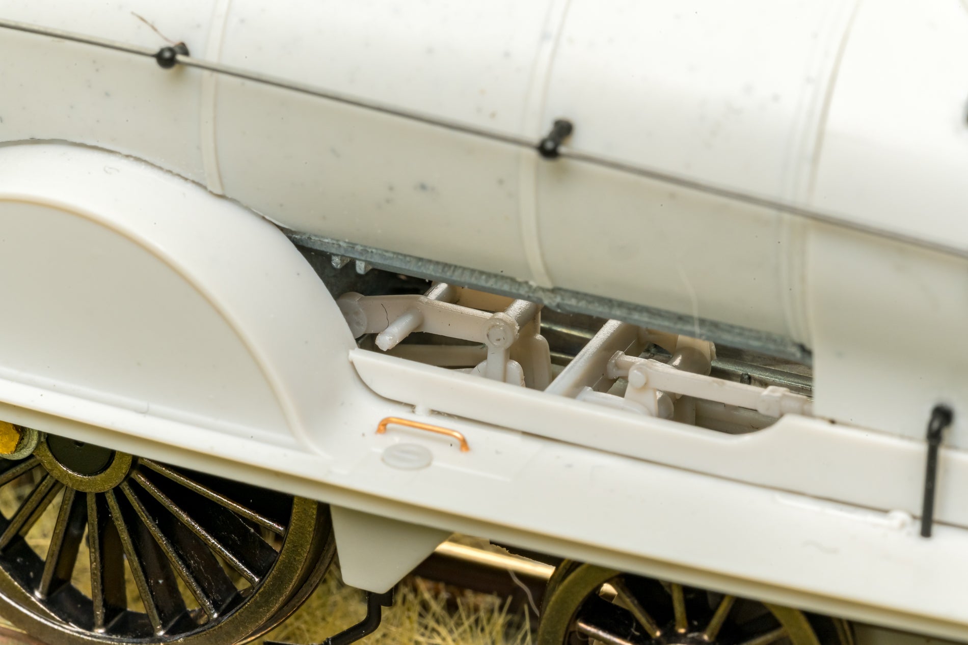 Other small detail variants include different lubricators, wash-out plugs, and lamp iron positioning. Different models are then fitted with clack valves, snifting valves, steam heat and vacuum pipe valances, and boiler side ejector pipes. For that finishing touch, all models have cosmetic inside valve gear.