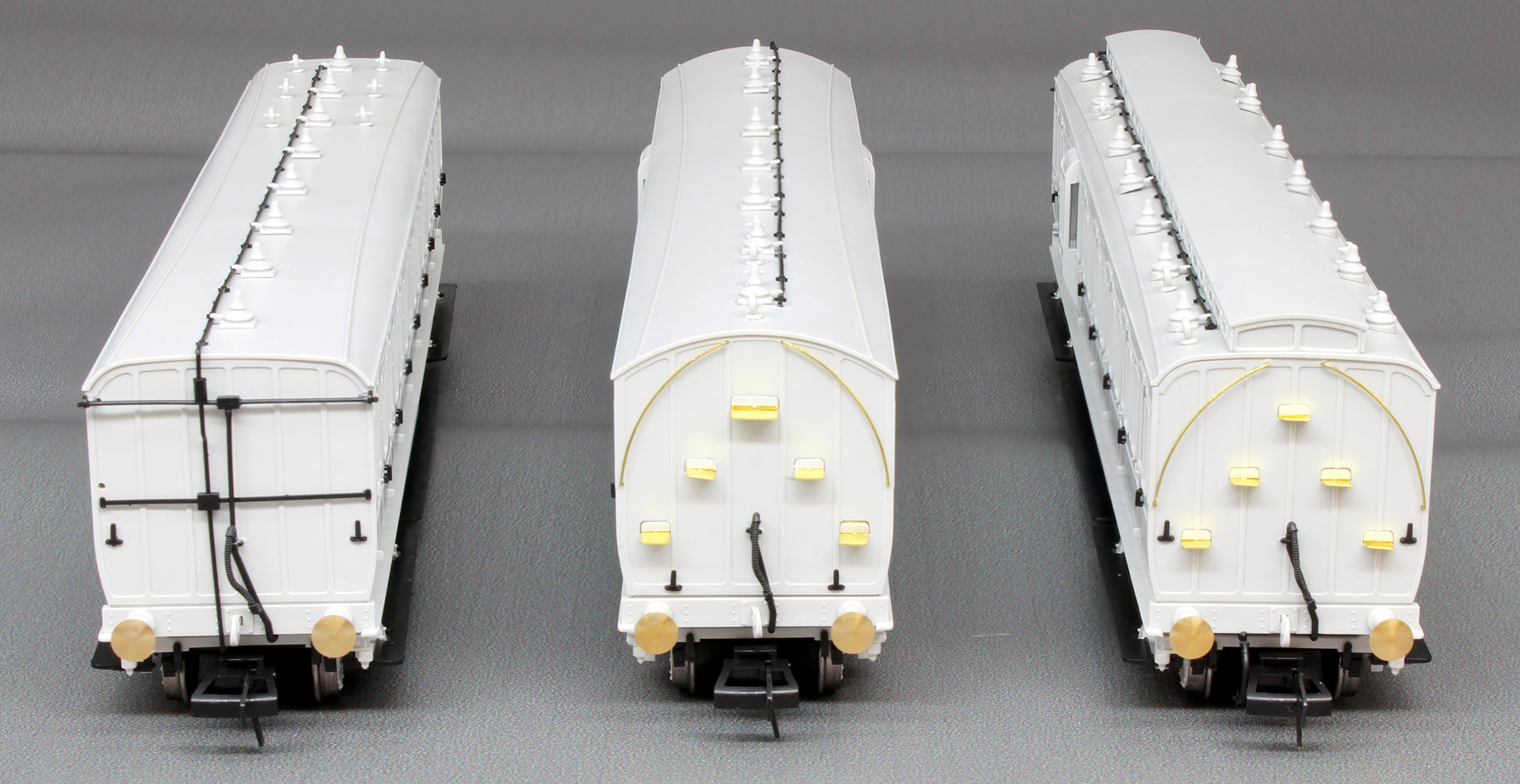 To complete the appearance of different gas and electric lighting fittings, the relevant models will feature separately fitted parts for battery and regulator boxes, a dynamo, roof-mounted gas lamps, plumbing, and gas tanks on the underframes.