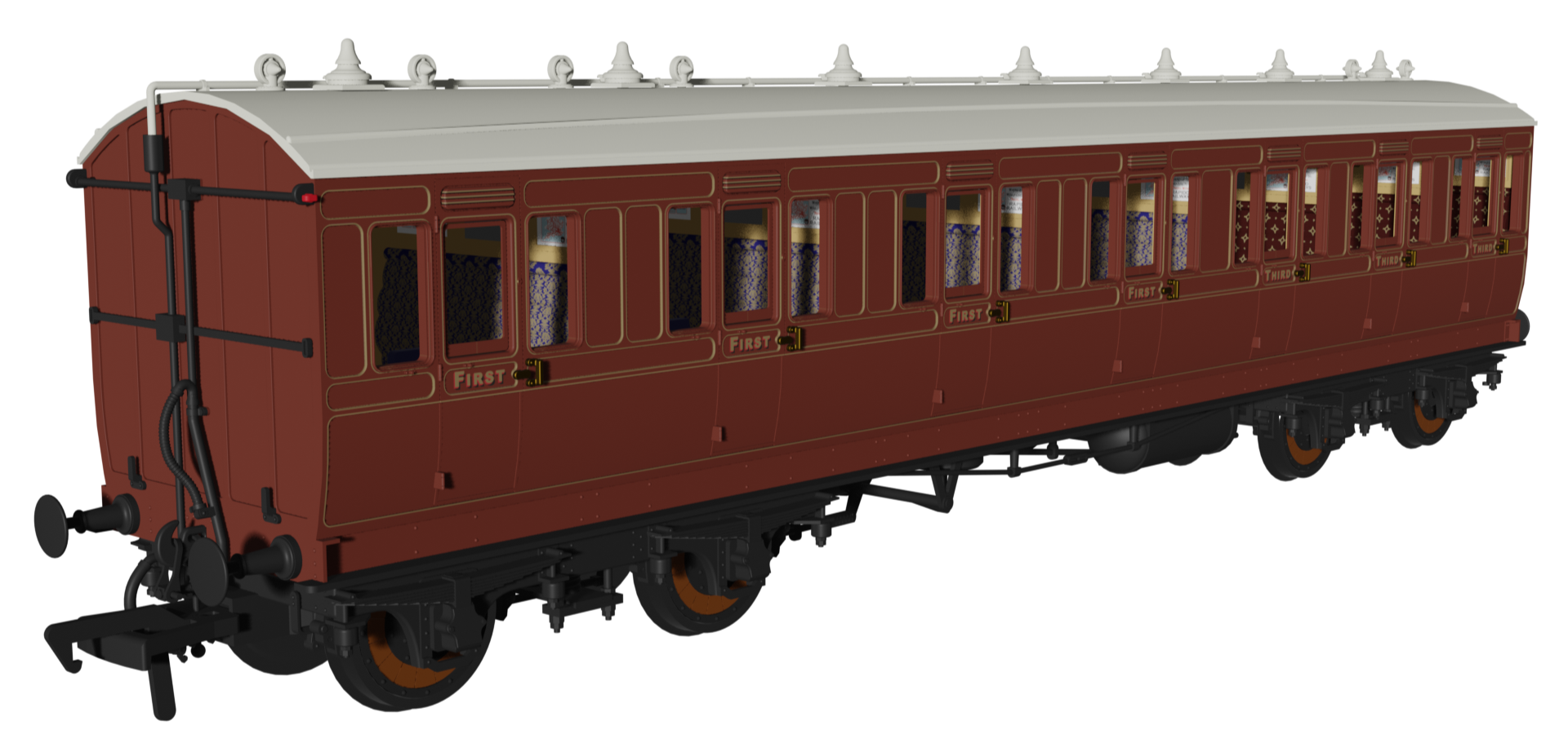 To complete the appearance of different gas and electric lighting fittings, the relevant models will feature separately fitted parts for battery and regulator boxes, a dynamo, roof-mounted gas lamps, plumbing, and gas tanks on the underframes.